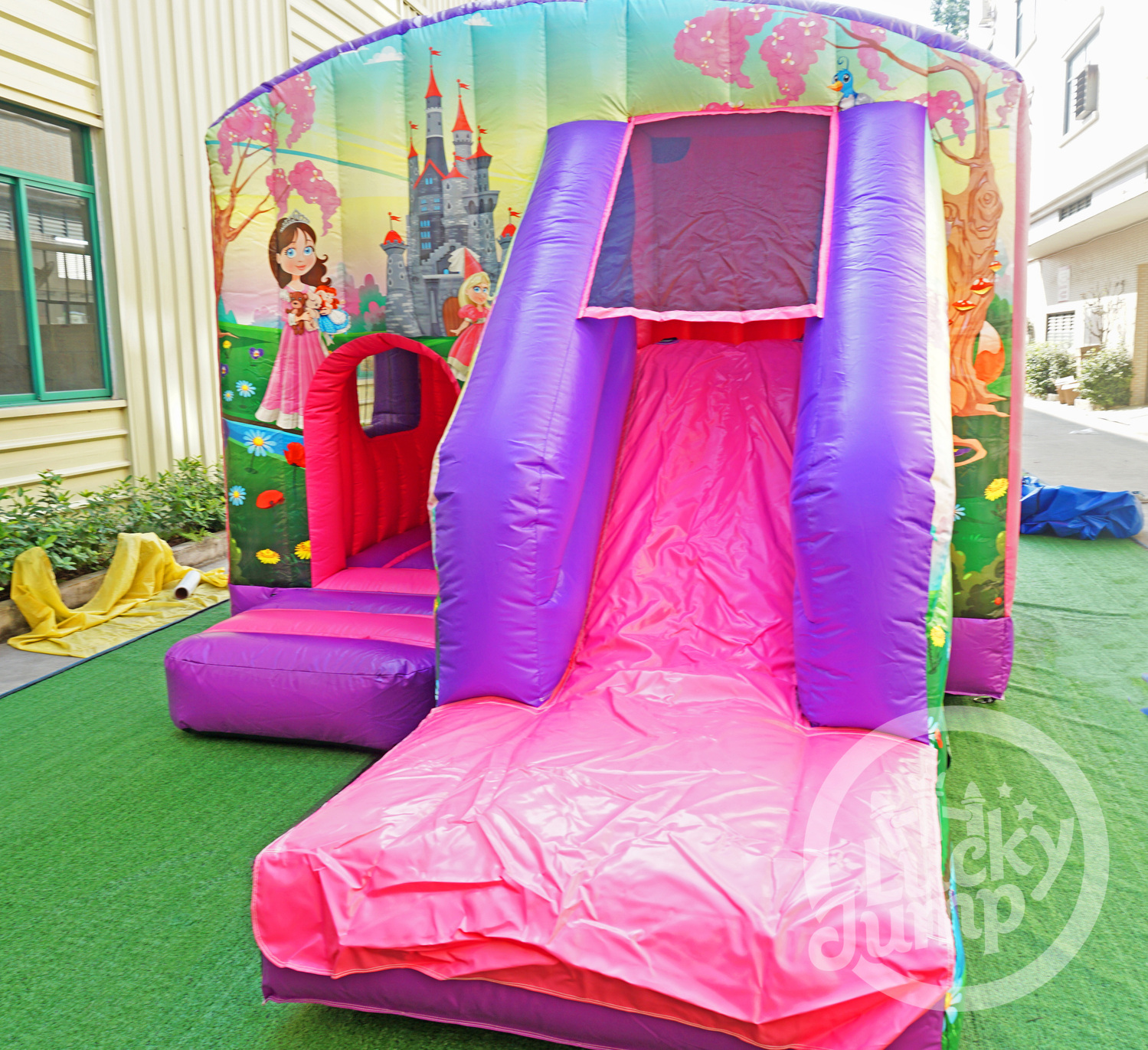 Istana fantasi serba boleh bertemakan rumah melantun dengan slaid untuk semua majlis